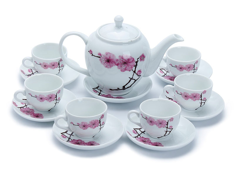 Bộ bình trà gồm: 1 ấm trà, 6 chén, 7 đĩa lót. Sản phẩm được làm làm hoàn toàn từ đất sét cao cấp, nung ở nhiệt độ cao. Đặc biệt, sản phẩm phải trải qua nhiều công đoạn nghiêm ngặt. Nhờ đó, món đồ gốm sứ này đảm bảo chất lượng bền đẹp. Và tuân thủ được độ an toàn tuyệt đối cho sức khỏe người dùng.